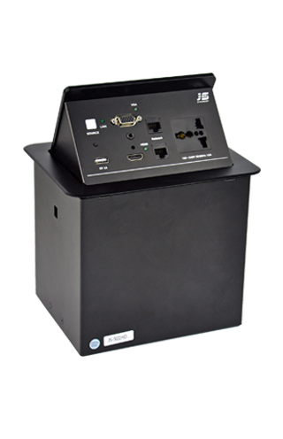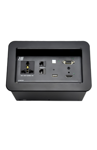 JS series interconnect box is to remove the obstacles by combine all sockets in one plate and special designed conceal structure. It is ? ush- mounted on tabletop with cables connected under table in orderly. Users just need to open the top panel that all ports or cables will appear for use.