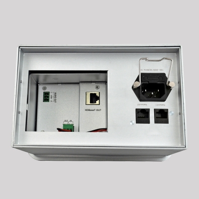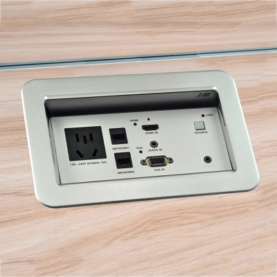 JS-600HD可藏式接線盒是一款帶高清轉換及長距離傳輸的適合桌面安裝的滑蓋式接線盒,它上端連接的VGA、音頻、HDMI信號可通過單根6類網線輸出高清視頻信號、音頻信號、傳輸距離100M,安裝布線便利;